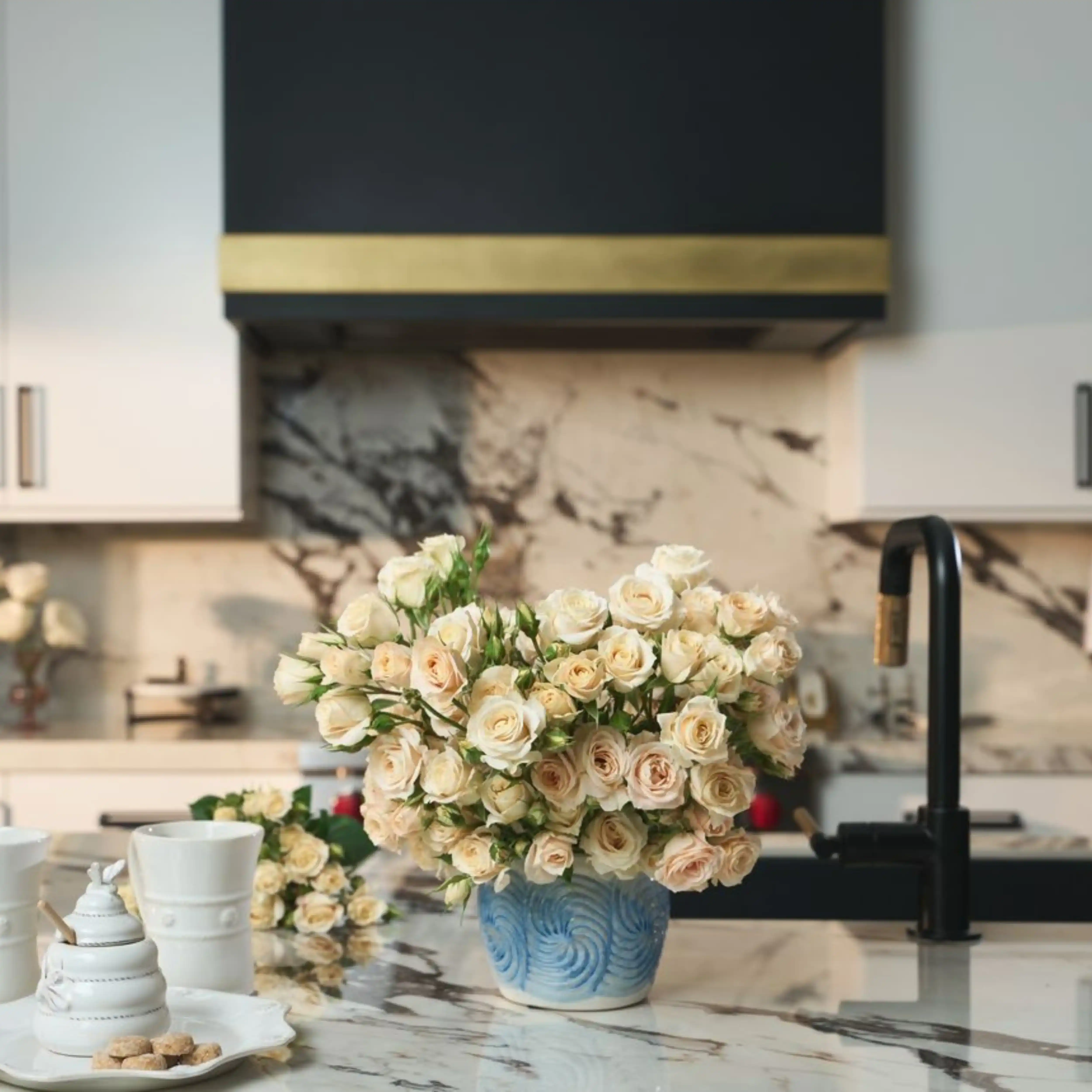 Pure and refined, this spray rose boasts off-white petals that unfurl in lush, velvety layers. As it blooms, the overlapping textures create luxurious depth and dimension to bring quiet sophistication to any bouquet.