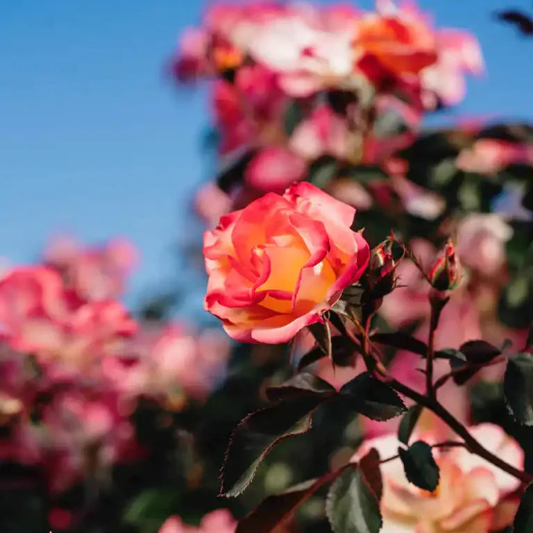 Betty Boop™ captivates with a dazzling duet of color—vivid cherry-red edges blend into a golden-yellow heart. Framed by dark, glossy foliage and finished with an irresistible fruity fragrance, these semi-double blooms boldly represent botanical luxury.