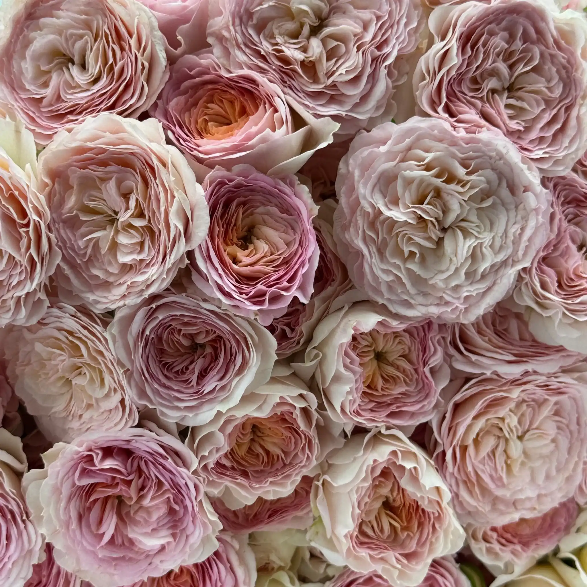 The Blushing Parasol rose's pastel pink petals fade into a glowing peach heart, lending it a soft, feminine quality. The layered, rounded petals elegantly overlap, creating a sense of movement—as if caught in a perpetual breeze.