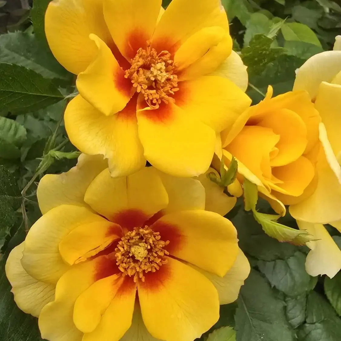 These two-toned blossoms captivate with saffron-hued petals that deepen to a vibrant ruby-red heart, evoking the magic of a midsummer sunset. As they mature, the petals fade into a creamy white for a breathtaking transformation.