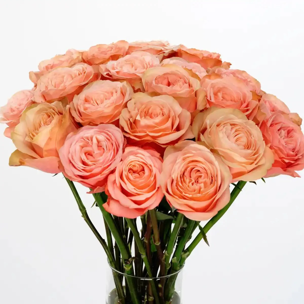 The peach-toned Kahala rose is a captivating creation, seamlessly transitioning from vibrant watermelon shades to the gentlest hint of orange. With petals that unfold in a graceful gradient from light to dark, it is an elegant and unexpected reimagining of the classic garden rose.
