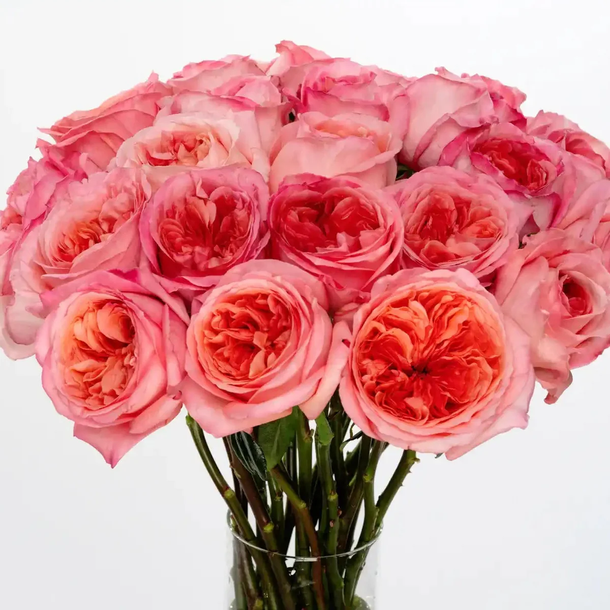 The London Eye rose boasts medium-pink petals that reveal a breathtaking play of light and texture as they unfurl. Each layered bloom unveils intricate shapes, offering a striking interpretation of the classic garden rose with a contemporary twist.