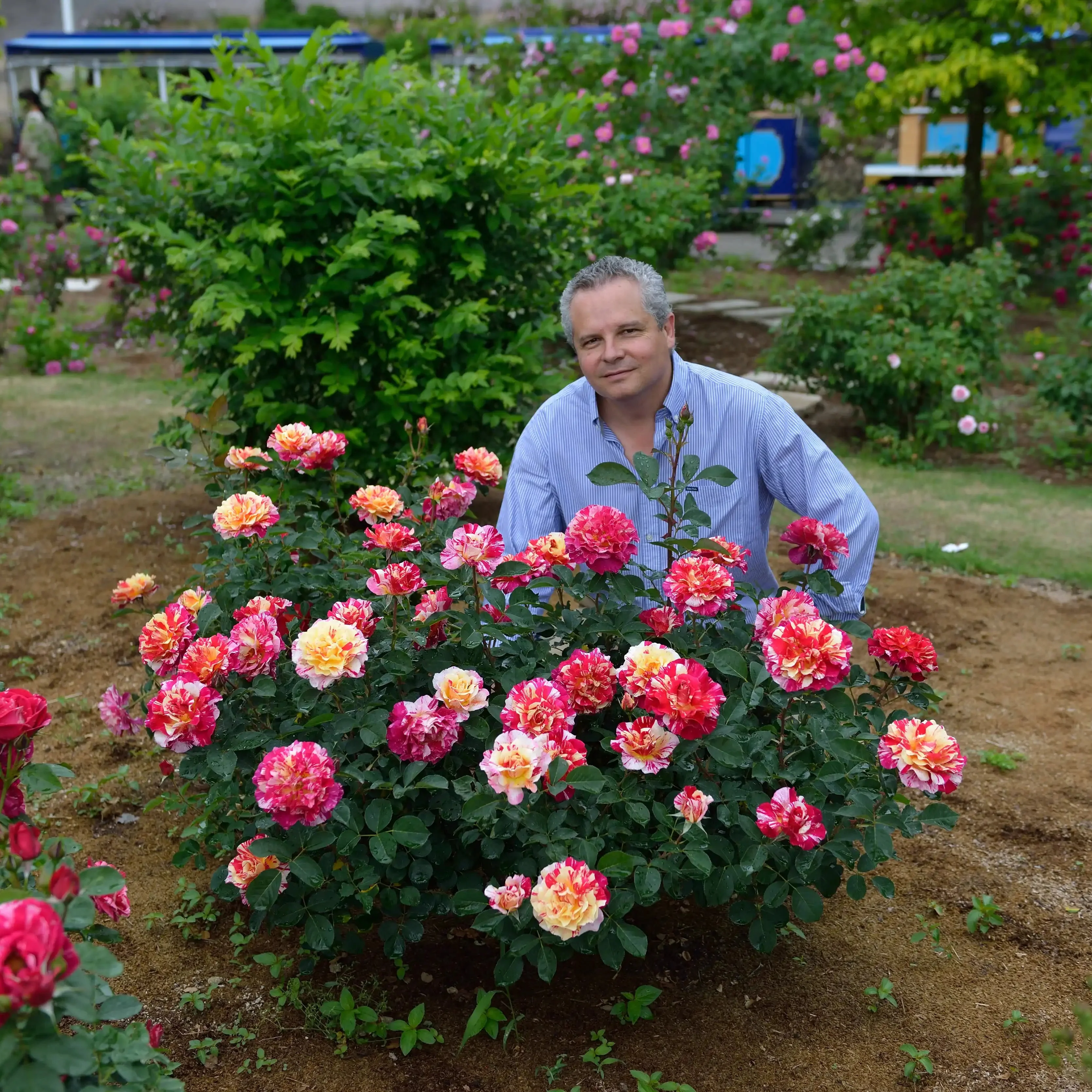 Echoing the vivid energy of its namesake painter, this rose features striking red, white, and yellow brush strokes. These easy-to-care-for, season-long blooms are a hybrid tea variety that will delight novice and experienced gardeners alike.