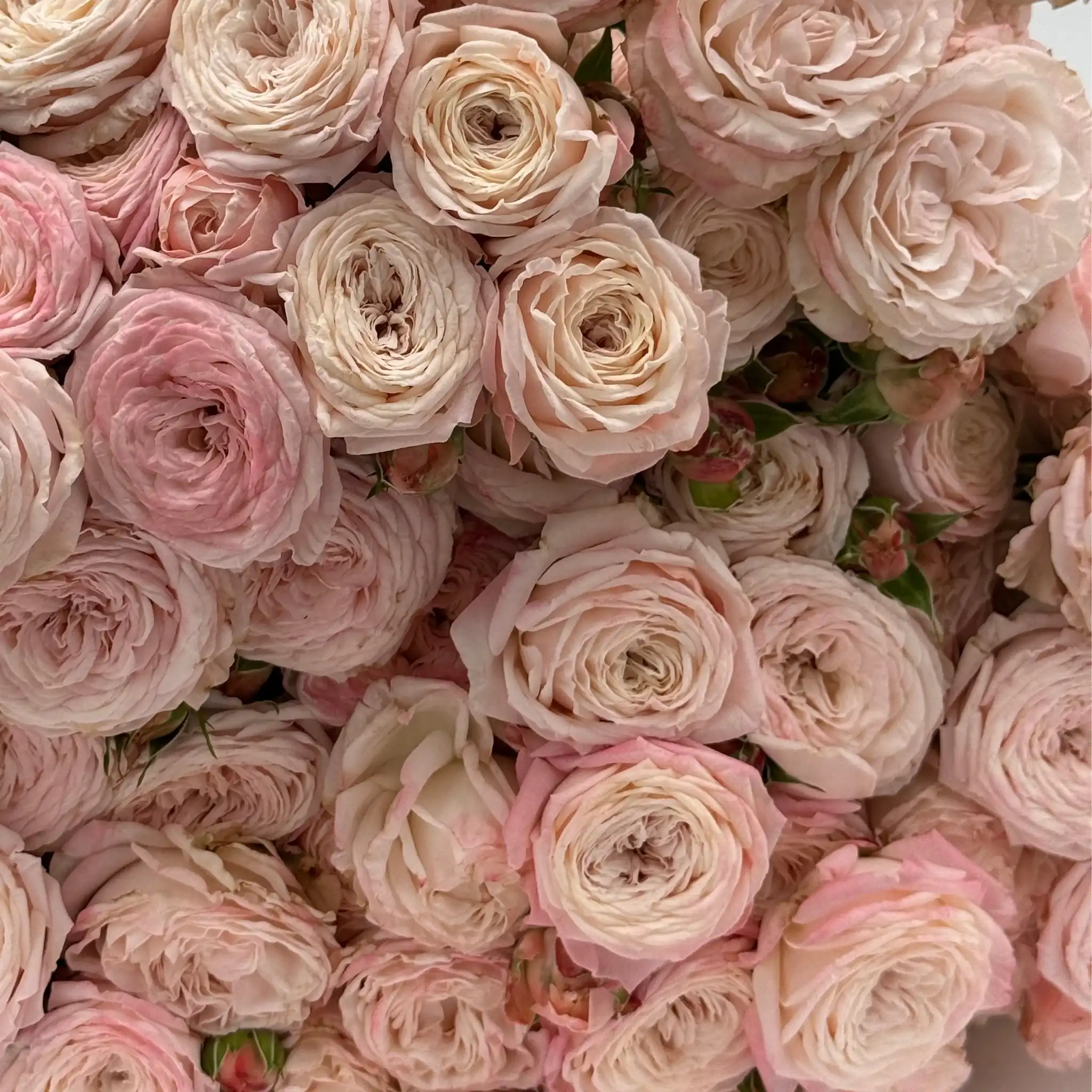 The Nynke (N-ie-nk-uh) spray rose is femininity in floral form. With multiple ballet-pink buds per stem, it has a lush, abundant look that adds depth and texture. The buds open to reveal large, full, beautiful blooms, making this rose an example of elegance and charm.